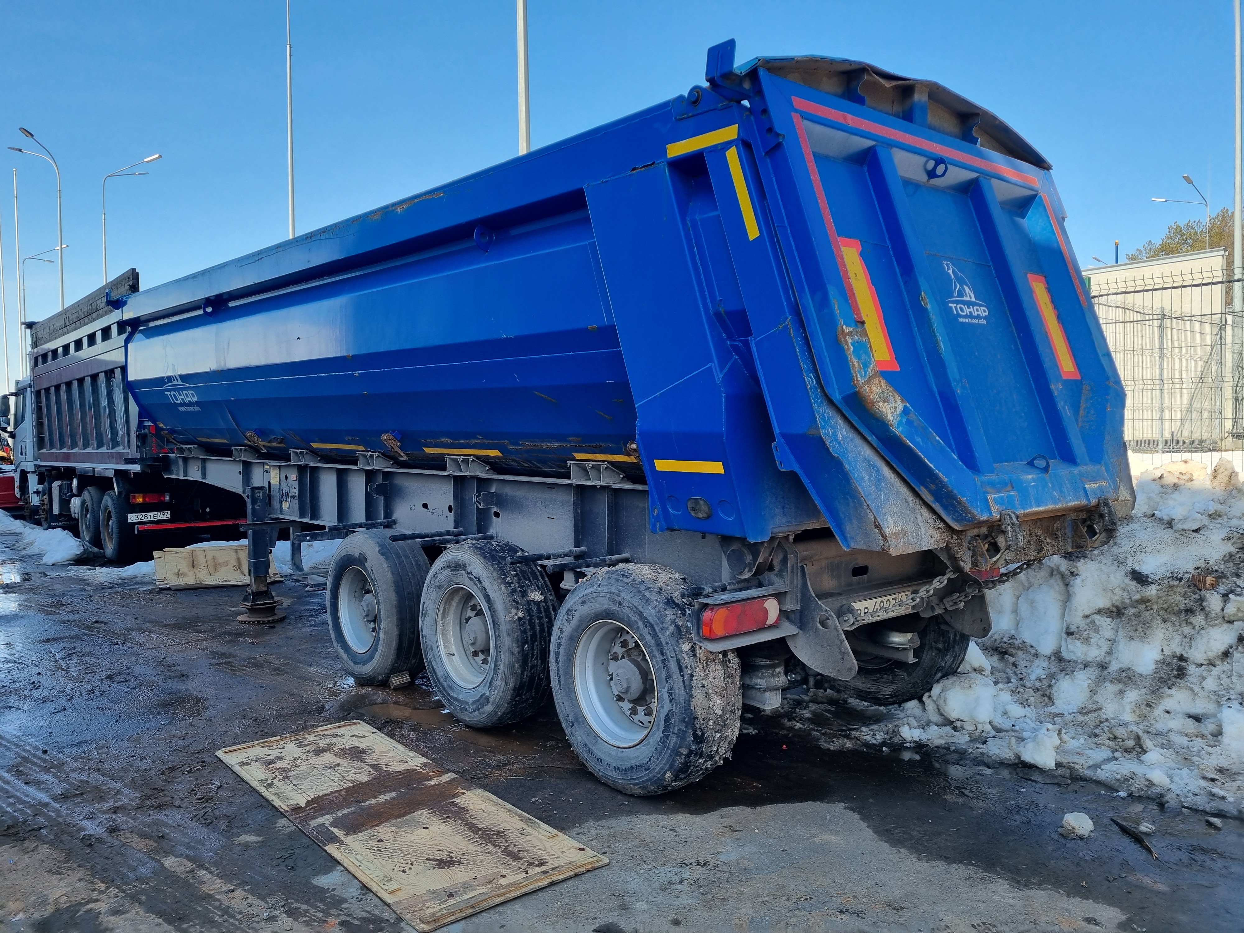 Задний борт: откидной, дополнительно оснащён разгрузочными лючками.