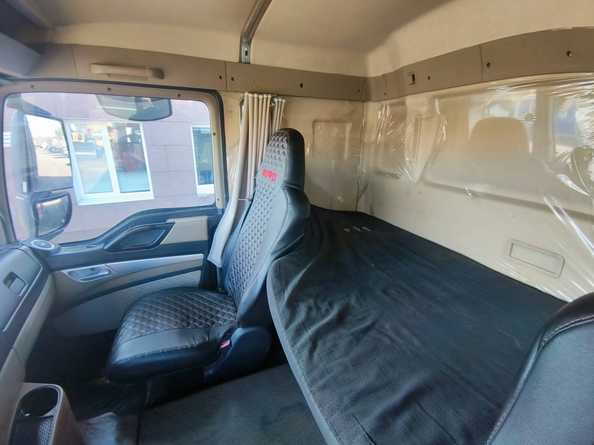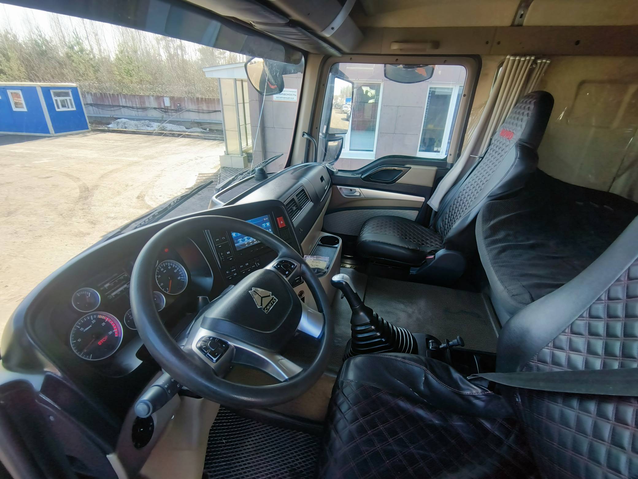 Кабина - Стандартная цельностальная кабина (высокая), трёхскоростные стеклоочистители, 2-х местная, спальное место